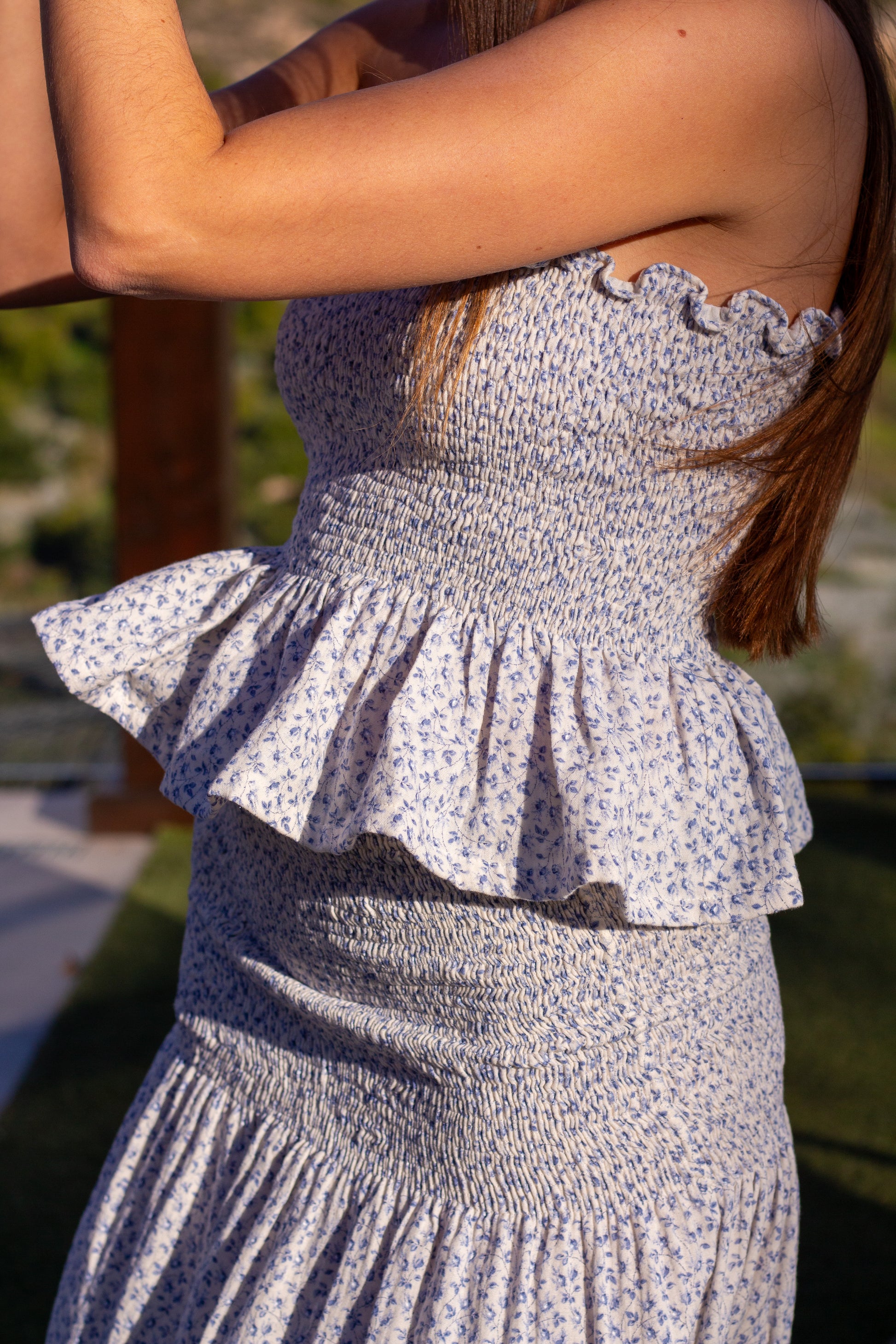 Falda midi con nido de abeja.